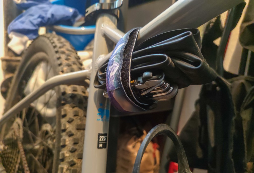 Being able to replace an inner tube is good. But it’s only one part of the work done. You need to be able to inflate that tire too. That’s why I always carry a mini pump on my bike so I can pump up my tires to the desired air pressure. This pump is mounted beneath my bottle cage so I don’t have to remember taking it with me. Storing my tools on my bike takes them out of my pockets or my backpack which makes the ride more comfortable.